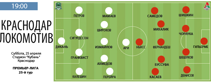 Предыдущий визит "Локомотива" в гости к "Краснодару" завершился победой со счетом 3:1. Исход драматичного поединка решили два гола Александра Самедова на 90-й минуте. |