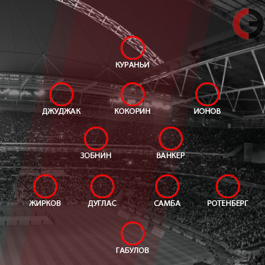 Запасные: 1. Шунин, 21. Березовский, 25. Козлов, 81. Данилкин, 77. Катрич.
