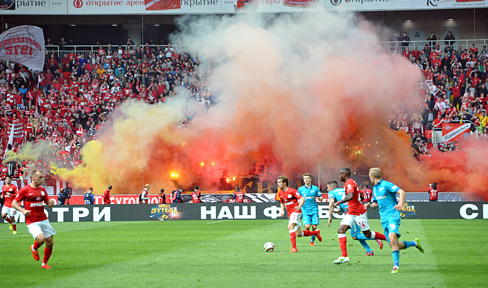 "Спартак" за использование зрителями пиротехники получил штраф в 100 тысяч рублей и на столько же – за скандирование болельщиками оскорбительных выражений.