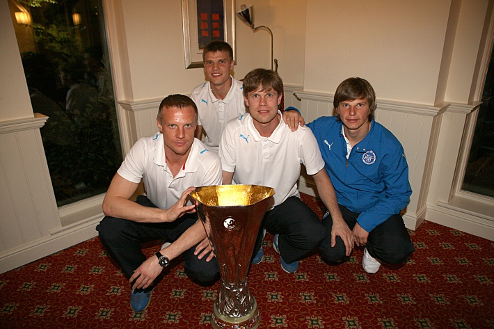 "Зенит" - обладатель Кубка УЕФА. Вячеслав МАЛАФЕЕВ, Игорь ДЕНИСОВ, Владислав РАДИМОВ и Андрей АРШАВИН (слева направо). Фото - Вячеслав ЕВДОКИМОВ, ФК "Зенит"