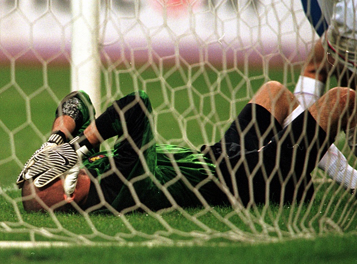 9 октября 1999 года. Москва. Россия - Украина - 1:1. Александр ФИЛИМОНОВ переживает самый самый знаменитый пропущенный гол, не пустивший сборную России на чемпионат Европы-2000. Фото - Александр ВИЛЬФ