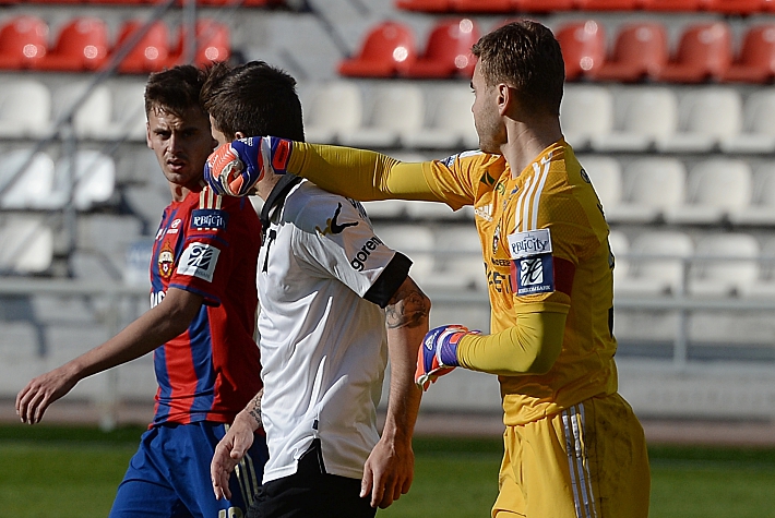 25 апреля. Раменское. "Торпедо" - ЦСКА - 0:2. Вратарь ЦСКА Игорь АКИНФЕЕВ бьет полузащитника "Торпедо" Далибора СТЕВАНОВИЧА. Фото - Алексей Филиппов/РИА Новости