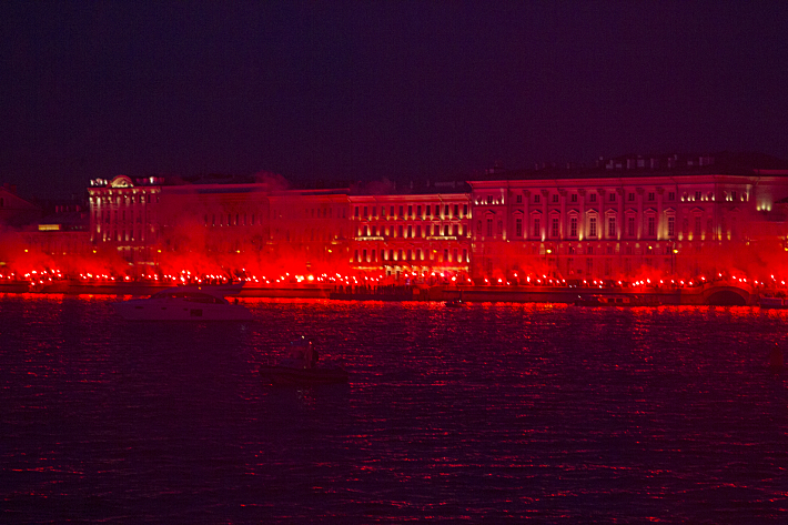 После общения с болельщиками и импровизированной автограф-сессии от Лодыгина, Смольникова и Шатова, зенитовцы покинули стрелку Васильевского острова, но концерт на этом не закончился. В мае в Петербурге темнеет поздно, поэтому двух последних сюрпризов пришлось ждать почти до полуночи. По команде ведущего подсветка здания Биржи окрасилась в сине-бело-голубые тона. А завершился вечер перформансом от фанатов. Несколько сотен человек выстроились в живую цепь от Биржевого моста через стрелку Васильевского острова к Дворцовому мосту и зажгли красные файера. Картина получилась впечатляющая.