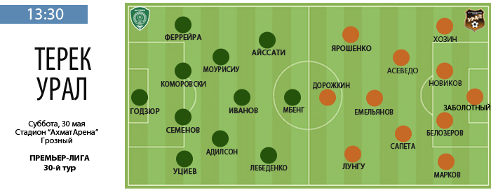 "Урал" прилетел в Грозный за сутки до игры, но при этом без своего главного тренера – Александр Тарханов остался в Екатеринбурге из-за проблем со здоровьем. Руководить командой в матче с "Тереком" будет Юрий Матвеев. Он взял с собой 20 игроков, которые в пятницу вечером провели тренировку на "Ахмат Арене".