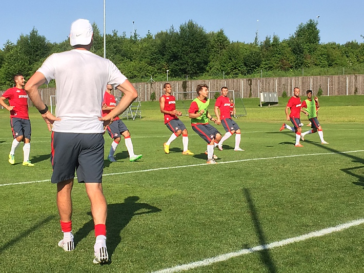 По плану у "Спартака" была лишь одна тренировка. В пятницу красно-белым предстоит спарринг с "Люцерном". Почти все время игроки работали с мячом – играли в "квадраты" во всех вариациях, били по воротам, отрабатывали "стандарты", ну и провели двухсторонку на половину поля. Вдоволь полетали по углам Ребров, Песьяков и Сухорученко. Джанлука Риомми – единственный оставшийся в команде из тренерского штаба Якина – общается с голкиперами на смеси итальянского, английского и русского. Со стороны выглядит забавно, хотя никаких проблем не доставляет. Понимают его вратари с полуслова.