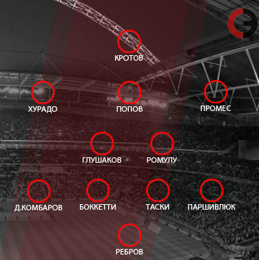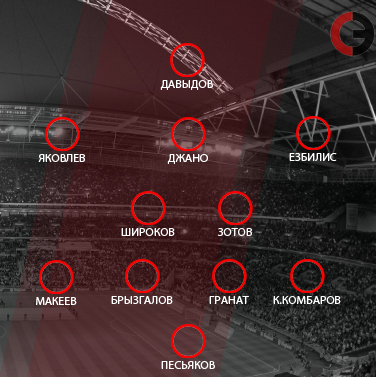 "Спартак" (Москва): Песьяков (Ребров, 46), К.Комбаров (Паршивлюк, 46), Макеев (Таски, 46), Гранат (Боккетти, 46), Брызгалов (Д.Комбаров, 46), Езбилис (Промес, 46), Зотов (Глушаков, 46), Широков (Ромулу, 46), Ананидзе (Попов, 46), Яковлев (Хурадо, 46), Давыдов (Кротов, 46).