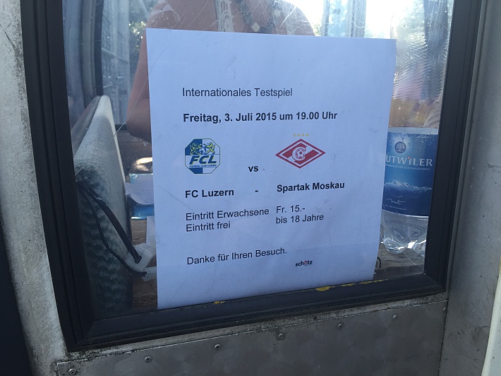 Даже жаль, что "Спартак" играл с "Люцерном" не в одноименном городе, а уехал за 40 километров. В крохотную деревушку под названием Шёц. Плутая по улицам с одноэтажными домами, проезжая мимо коров, пасущихся прямо вдоль дороги, сначала было трудно представить, что где-то здесь уместился стадион. Однако он есть. Где-то на окраине, между огородами и лесами. И аж с тремя полями.