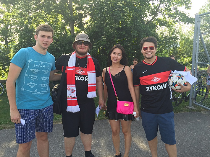 А тем временем народ забил под завязку единственную центральную трибуну вместимостью в 1500 зрителей. Более того, места хватило не всем и многие рассыпались по периметру поля. Прямо как в Англии в старые добрые времена. Люди пили пиво, ели вкусные сардельки, радовались жизни. Повсюду носились маленькие дети. Не обошлось и без спартаковских болельщиков. Насчитал их примерно три десятка: Егор, Геннадий, Алексей и очаровательная Жаннет, студенты из Женевы. Они рассказали, что сами с трудом нашли эту деревушечку. И просили, чтобы я обязательно написал: за "Спартак" они болеют всю жизнь, даже сейчас, проживая в другой стране.