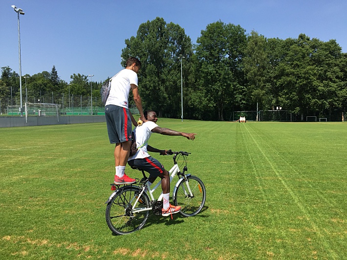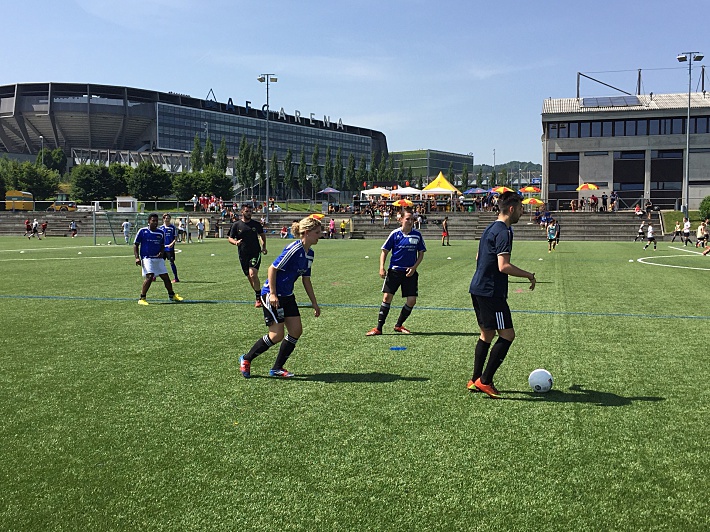 Швейцария не перестает восхищать. Сегодня по пути на очередную тренировку "Спартака" увидели большой футбольный праздник. Все бы ничего – в России такие тоже бывают. Удивило то, что гоняет мяч и стар, и млад, и девушки, и парни. Причем на одном поле. Женская команда против мужской – такое, признаться, раньше видеть не доводилось.