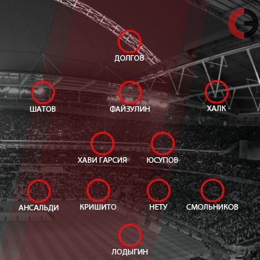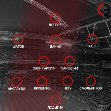 "Зенит" (Санкт-Петербург): Лодыгин, Смольников, Кришито, Нету, Ансальди, Халк, Файзулин, Хави Гарсия, Данни (Юсупов, 22), Шатов, Долгов.