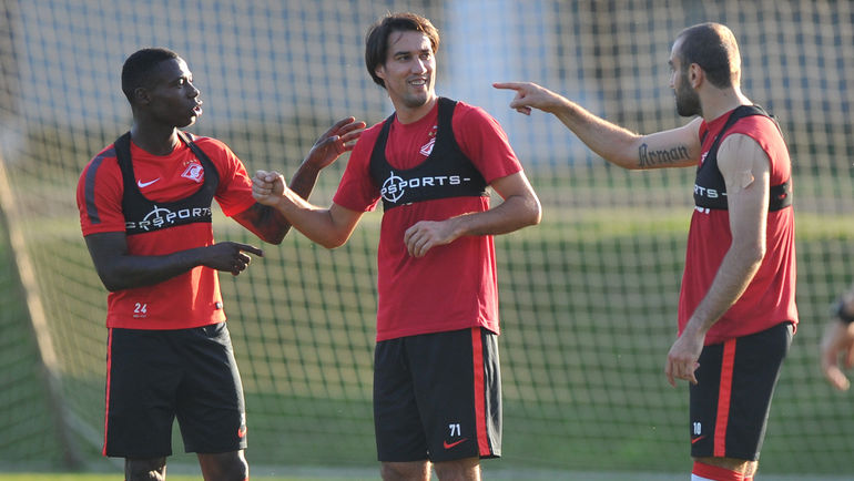 Пока Ромулу лечится, новобранец красно-белых Зе Луиш имеет полное право чуть-чуть пригорюниться. С кем же теперь разговаривать на родном португальском? Однако партнеры не бросают в беде и не дают скучать африканскому нападающему. Опеку над ним, судя по всему, взял Сальваторе Боккетти. Два иностранных футболиста часто держатся вместе, а к полю перед тренировкой они прошагали в теплых дружественных объятиях. Так что не грусти, Зе Луиш!