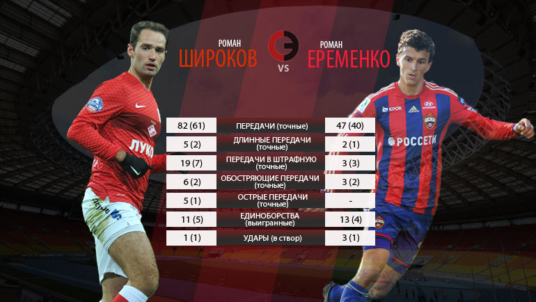 Что же касается одной из самых интригующих заочных дуэлей поединка – Широков против Еременко, то ярким противостояние, увы, не вышло. Главными героями оказались другие лица. Спартаковец, как и его команда в целом, играл активнее, отдал почти в два раза больше передач, чаще всех в своей команде пробовал найти партнера в чужой штрафной. Еременко же стал заметен на поле только с середины второго тайма, когда нанес три очень опасных удара. В первой половине он словно отсутствовал на поле.