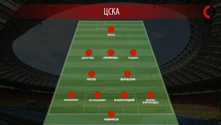Расстановку ЦСКА можно вообще не разбирать – ее все успели выучить наизусть. Армейцы верны себе и от схемы 4-2-3-1 давным-давно не отступаются. В зависимости от смещений в центр крайних хавбеков – в большей степени Тошича, в меньшей – Дзагоева, расстановка трансформируется. Фланговые защитники ходят вперед, но с очень разным успехом. Мариу Фернандес, как и всегда, в дерби крайне заметно играл в атаке, в первом тайме едва не забил сам, а после перерыва классным навесом нашел в штрафной Еременко.