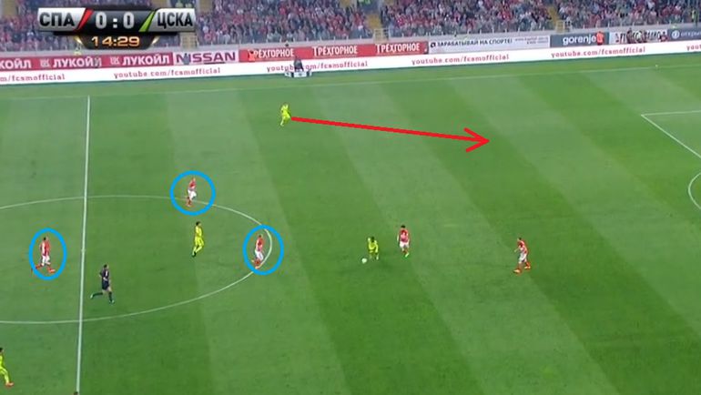 Комбаровы, оттягиваясь назад, прикрывали Тошича и Дзагоева, бегали за ними по всему полю, и, если армейские полузащитники смещались в центр, в обороне красно-белых образовывались чудовищные дыры. Крайние центральные защитники Таски и Боккетти подстраховывать попросту не успевали, поскольку играли в линию гораздо глубже к своим воротам.