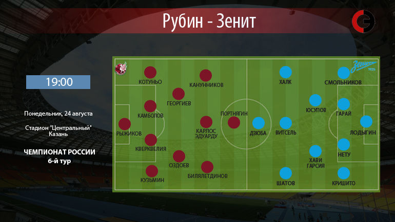 * Последняя победа "Рубина" над "Зенитом" датирована июлем 2013 года. Тогда казанцы обыграли сине-бело-голубых на своем поле со счетом 2:1. * В составе "Рубина" есть четыре футболиста, которые ранее защищали цвета "Зенита": Соломон Кверквелия и Максим Батов выступали за молодежку петербургского клуба, Максим Канунников был игроком основного состава, а Рамиль Шейдаев отдан сине-бело-голубыми в аренду. |