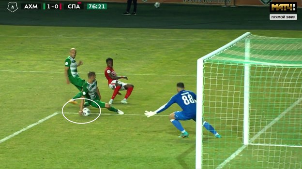 Почти не вызвали споров еще два эпизода — на 50-й и 85-й минутах, когда в штрафной «Ахмата» оказывались на газоне спартаковцы.