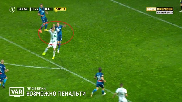 На 52-й минуте Сергей Карасев ошибочно назначил пенальти в ворота гостей и вынес предупреждение зенитовцу Дмитрию Чистякову. Судья принял такое решение спустя три минуты после случившегося в штрафной площади сине-бело-голубых, отреагировав на вмешательство видеоассистентов Станислава Васильева и Дмитрия Чельцова и посмотрев видеозапись.