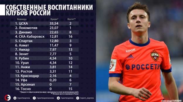 В чемпионате России, кроме ЦСКА, активнее всего своих воспитанников в прошедшем сезоне использовали "Локомотив" и "Динамо". А вот у "Тосно", "Арсенала" и "Уфы" дела с этим обстоят совсем плохо.