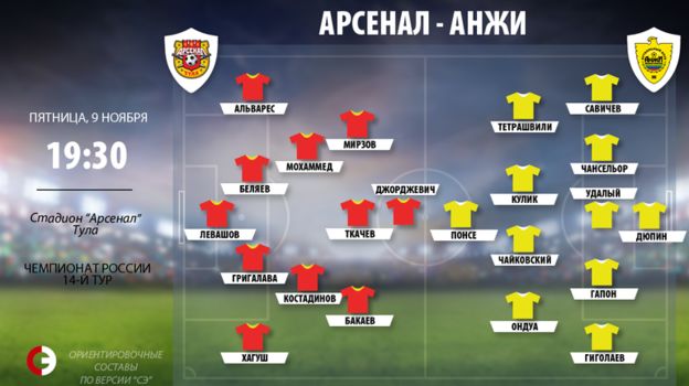 "Арсенал" – "Анжи". Ориентировочные составы. Фото "СЭ"
