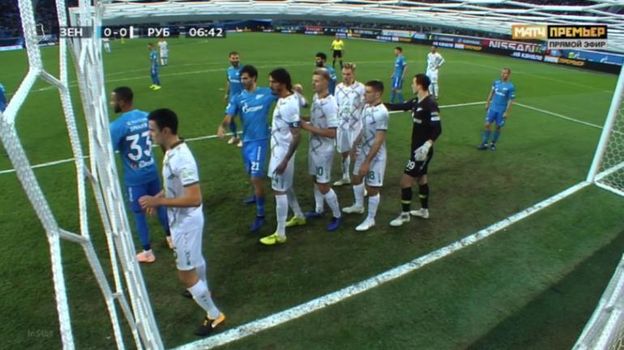 Передача в центр проходит, Могилевец и Коновалов ожидаемо включаются в прессинг и мешают дальнейшему продвижению. Газинский катит мяч направо Петрову, которого в момент приема атакует Байрамян, остальная четверка "Рубина" тоже поджимает в зоне. В итоге Петров не может сыграть накоротке и выполняет диагональ на Рамиреса, но неточно. "Рубин" зарабатывает аут.