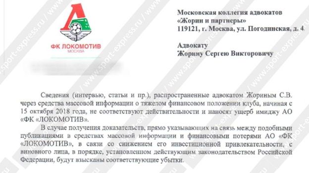 – Угрозы заключались в том, что клуб ответил на мой адвокатский запрос так: якобы в связи с моими комментариями по делу теряется инвестиционная привлекательность клуба, – говорит Жорин. – По мнению руководства "Локомотива" это происходит не из-за игры футболистов, не из-за поведения Тарасова, а именно из-за моих высказываний – мол, если ФК установит взаимосвязь между этими вещами, то выдвинет мне иск.