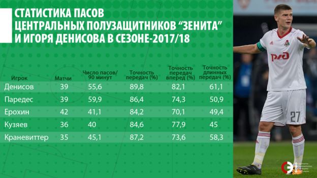 Вряд ли Сергей Богданович подробно изучал статистику Денисова, но с ней аргументация была бы еще более весомой. Железнодорожник обходит центральных хавбеков "Зенита" не только по оборонительным показателям, но и по статистике передач. У Денисова выдающийся процент точности пасов в ушедшем сезоне – 89,8. Среди всех игроков чемпионата он находится на 12 месте, но среди полузащитников – на первом. Важно добавить, что Денисов сыграл в этом сезоне 39 матчей – при таком количестве игр столь высокий показатель точности передач удивителен.