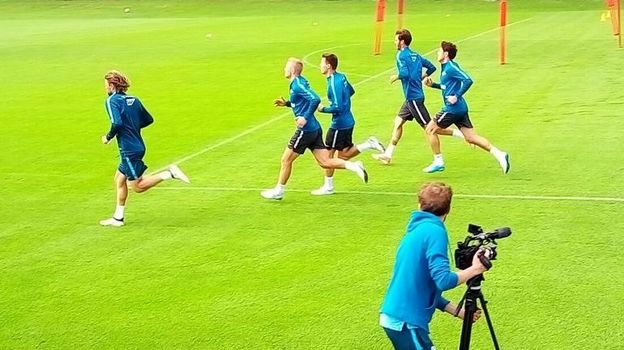 Пробежав положенное, четверка сборников добралась и до мячей. Правда, Ерохин с Жирковым пошли отдыхать на бровку, а Смольников с Полозом еще несколько минут продолжали отрабатывать передачи. С другой стороны, с поля новички уходили уже не одни, а вместе со всеми. И нашли, что обсудить с новыми партнерами.