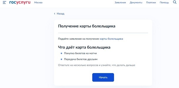 Для получения карты болельщика через сайт Госуслуг нужно: