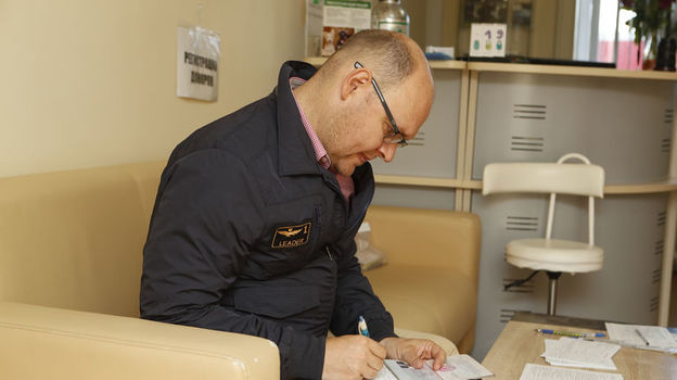 Этап первый – экспресс-тест. В ходе теста определяется состояние донора. Врач прокомментировал состояние Геркуса: давление в норме, пульс в норме, следы алкоголя в организме отсутствуют.
