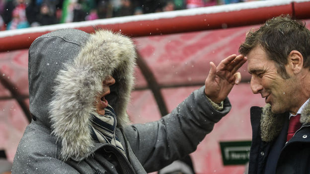 За час до матча президент железнодорожников Илья Геркус прохаживался вдоль линии поля вместе с ветераном команды Дмитрием Сенниковым и грустно разгребал ногой снег. Но о переносе речи не шло. К тому же на термометре было "всего" минус 9 градусов. А отказываться играть, как мы теперь знаем, можно при минус 15.