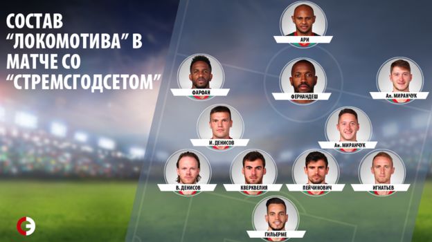 "Локомотив" (Москва): Гильерме, В.Денисов, Пейчинович, Кверквелия, И.Денисов, Фарфан, Фернандеш, Игнатьев, Ал.Миранчук, Ант.Миранчук (Коломейцев, 60), Ари.