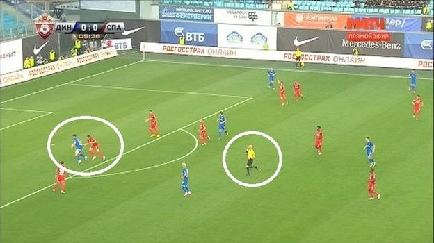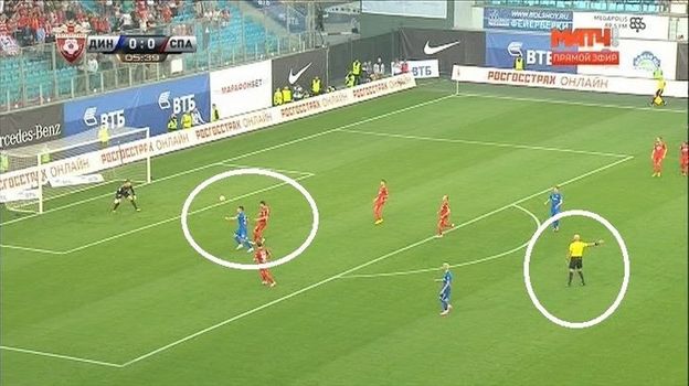 Однако видеоповтор свидетельствует: в момент паса ближе к линии динамовских ворот, чем спартаковский нападающий, находился один из защитников, который своей ногой "перекрывал" спартаковца. Первый ассистент Антон Аверьянов поступил верно, не зафиксировав у Луиза Адриану положение "вне игры".
