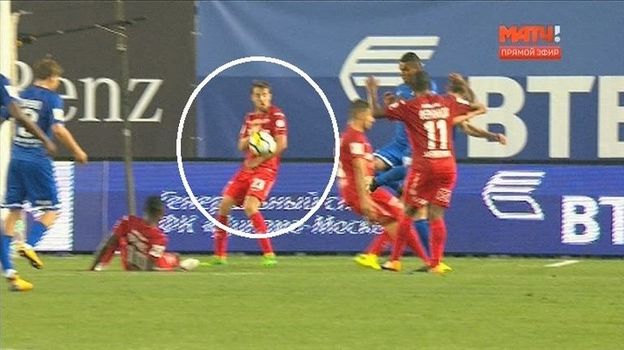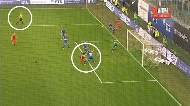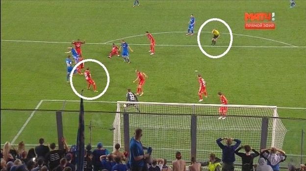 Так это выглядит на тех повторах, которые показали организаторы телетрансляции. Следует отметить, что арбитр находился не рядом с местом событий и, возможно, учитывал мнение первого ассистента Аверьянова.