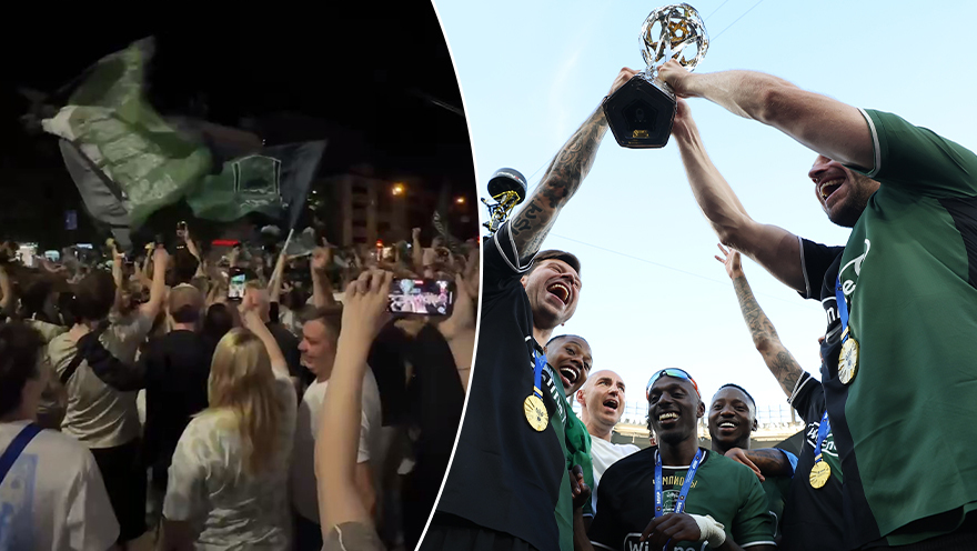 С каждой минутой болельщиков в центре становилось все больше, на одну ночь он буквально стал черно-зеленым. Повсюду флаги, шарфы. Проезжающие машины постоянно сигналили, а из их окон раз за разом высовывались счастливые лица. Сотрудники ДПС старались за этим следить, но не наказывали. Наблюдал картину, как полицейский подъехал к автомобилю, из окна которого 10 секунд назад высовывался пассажир, покачал головой, попросил так впредь не делать и пожелал счастливого пути. Все друг друга понимали.
