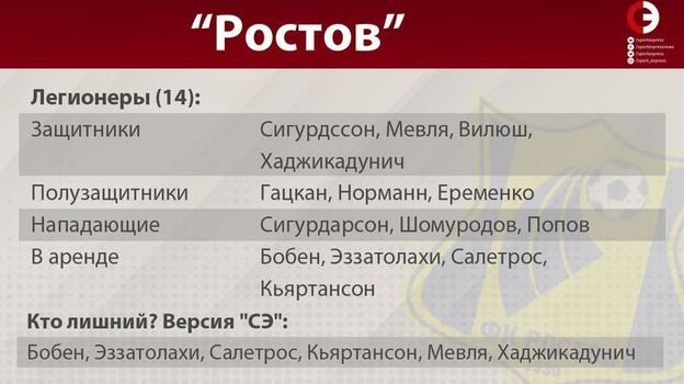 Допустим, исполком РФС утвердит менее жесткий вариант – "8+17". Даже в этом случае "Зениту" придется выставлять из заявки многих сильных футболистов. Сегодня у сине-бело-голубых есть четыре неприкосновенных иностранца – Ракицкий, Барриос, Азмун и Дриусси. Нобоа как минимум на год в "Зените" останется. Нету летом точно уйдет, у Ивановича заканчивается контракт (пока неясно, будет ли он продлен), под вопросом будущее в "Зените" Мамманы, Краневиттера, Маркизио и Эрнани. Эти четверо не играют, а при новом лимите держать таких футболистов в заявке – роскошь. Интересна ситуация с Маком и Ригони – у Семака они выполняют одинаковые роли, а при новом формате дублирования позиций иностранцами лучше не допускать. Из арендованных Мевля определенно лишний, а вот Джорджевич "Зениту" нужен – из-за игровых трудностей Заболотного и сложностей с законом Кокорина.