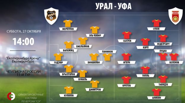 Потери: "Урал": Евсеев (дисквалификация), Погребняк,Чантурия (оба – под вопросом) - "Уфа": Йокич, Безденежных (оба – травма)