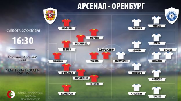 Потери: "Арсенал": Александров (травма), Берхамов (под вопросом)- "Оренбург": -