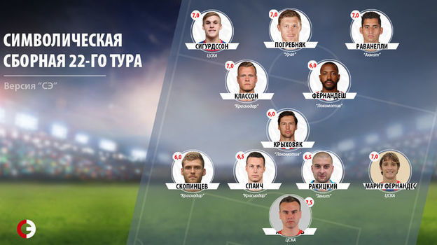 Акинфеев, Классон и Погребняк - в символической сборной тура