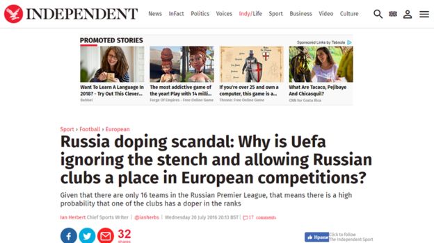Британский Independent призывает исключить российские футбольные клубы из еврокубков на основании доклада Макларена.