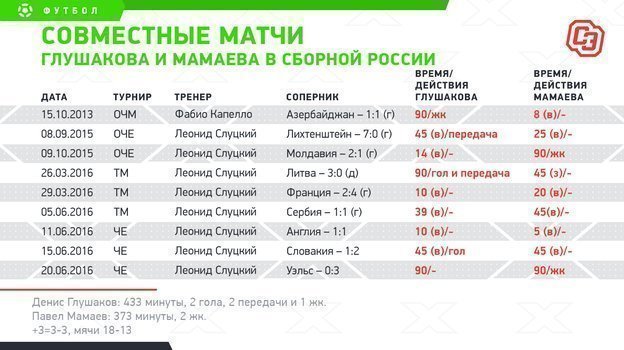 Через четыре дня Глушаков и Мамаев появились сразу после перерыва, когда национальная команда «горела» словакам 0:2 и пробовала перевернуть игру. Денис тогда забил, Павел стал лучшим по передачам. К сожалению, этого для спасения не хватило.