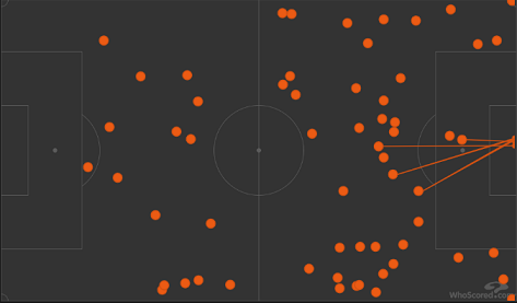 Вот карта действий Влашича в матче со «Спартаком» — он буквально разрывал финальную треть поля: