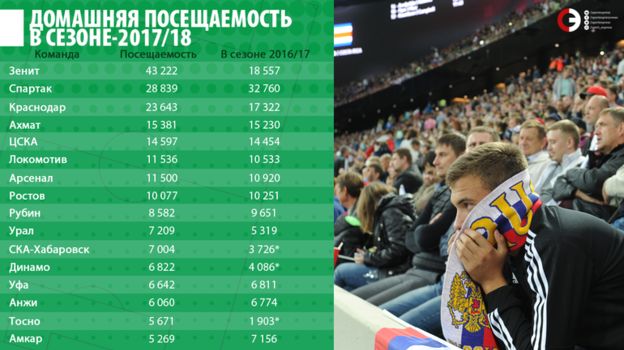 Справедливости ради, посещаемых матчей в чемпионате России-2012/13 состоялось меньше, чем в нынешнем. Тогда игры "Зенит" – ЦСКА, "Зенит" – "Анжи" и "Динамо" – "Рубин" прошли без зрителей из-за взрыва петарды рядом с вратарем бело-голубых Шуниным во встрече с "Зенитом".