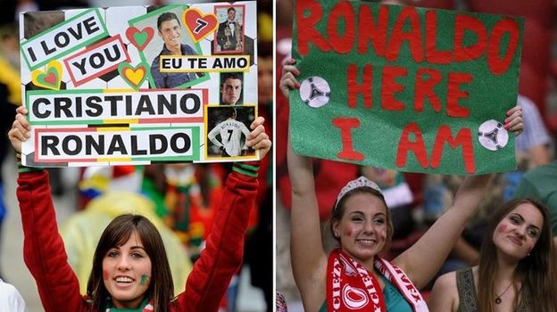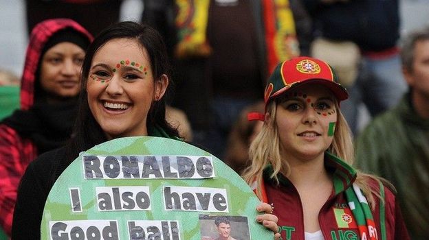С Роналду вообще связно множество интересных и оригинальных плакатов. На ЧМ-2010 болельщица сборной Португалии попала в объективы камер с постером: "Роналду, я тоже умею обращаться с мячиком". Английское слово ball имеет разные значения. В зависимости от контекста оно может переводиться не только как "мяч" или "шар", но и как "тестикула" или "яичко".