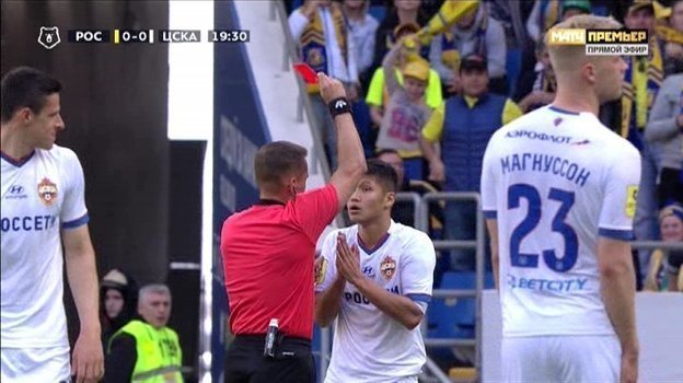Была у ростовчанина такая возможность? Однозначного ответа нет. Попов выбегал один на один с вратарем, но под углом. Безбородов долго изучал повтор и все же достал красную карточку. Момент из тех, в которых арбитра его начальники поддержат, а болельщики будут долго об этом спорить. Как, впрочем, и игроки ЦСКА, один из которых, Мариу Фернандес, даже получил предупреждение.
