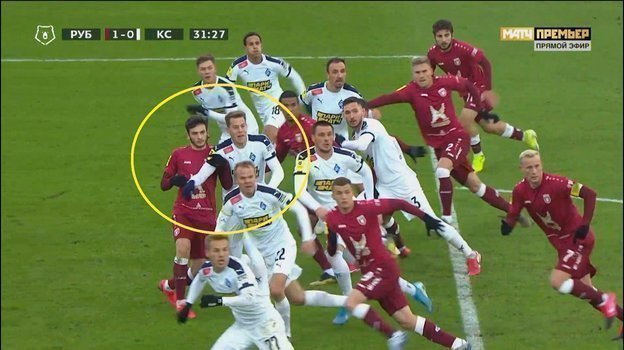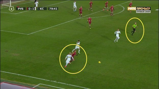 Дело в том, что в момент выполнения «Рубином» штрафного удара его игрок Хвича Кварацхелия зашел за линию офсайда. Затем, когда мяч был введен в игру, он начал движение в сторону от ворот и заблокировал соперника.
