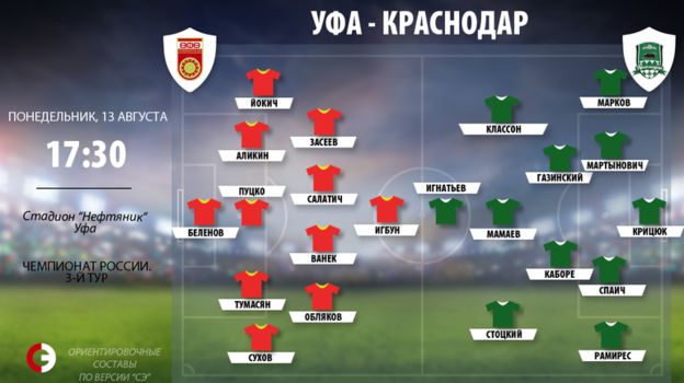 В Уфе одноименная команда примет "Краснодар". Для башкирского клуба данный матч станет последним перед ответной игрой третьего отборочного раунда Лиги Европы с люксембургским "Прогресом". И та встреча, и другая для "Уфы" очень важны. Столь плотного календаря история клуба еще не знала. Что касается "Краснодара", то очень интересно, как команда будет выглядеть без перешедшего в "Локомотив" Федора Смолова. Вероятно, на острие появится 19-летний Иван Игнатьев. А, может быть, это будет 32-летний бразилец Ари. Причем легионером он больше не считается, так как недавно получил российский паспорт.