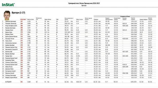 Если говорить об амплуа, то бросается в глаза лидерство Матвея Сафонова (индекс 297) в списке вратарей премьер-лиге. 20-летний голкипер опередил и Гильерме, и Игоря Акинфеева. Пусть он и провел за сезон в два раза меньше времени, чем два его именитых коллеги. Лучшим центральным защитником стал новичок "Зенита" Ярослав Ракицкий (324, сыграл меньше половины чемпионата), а атакующий – Влашич.