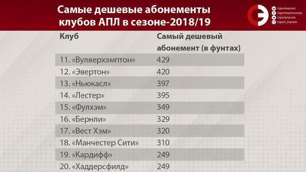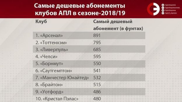 Но в Англии традиционно цены на билеты и абонементы высоки, из-за чего болельщики на матчах часто устраивают акции протеста. Интересно, что было бы, если бы такую же стоимость абонементов заломили бы российские клубы?