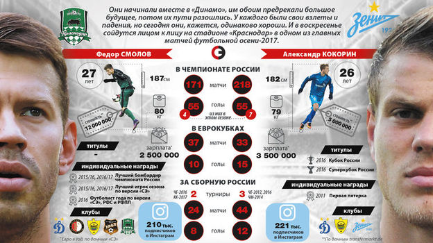 Современного нападающего отличают не только голы, но и другие результативные действия. "Краснодар", как известно, предпочитает игру в пас, но Смолов в ней – замыкающий. Поэтому в прошлом чемпионате он не отдал ни одной голевой передачи. Зато в минувшем туре ассистировал Окриашвили – впервые в премьер-лиге с апреля 2016-го. Кокорин за этот же отрезок времени сделал шесть таких пасов – по три в минувшем и этом сезоне.