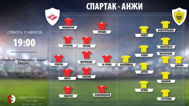 "Спартак" (Москва): Максименко, Рассказов, Жиго, Джикия, Комбаров, Ташаев, Зобнин, Глушаков, Ханни, Промес, Зе Луиш.